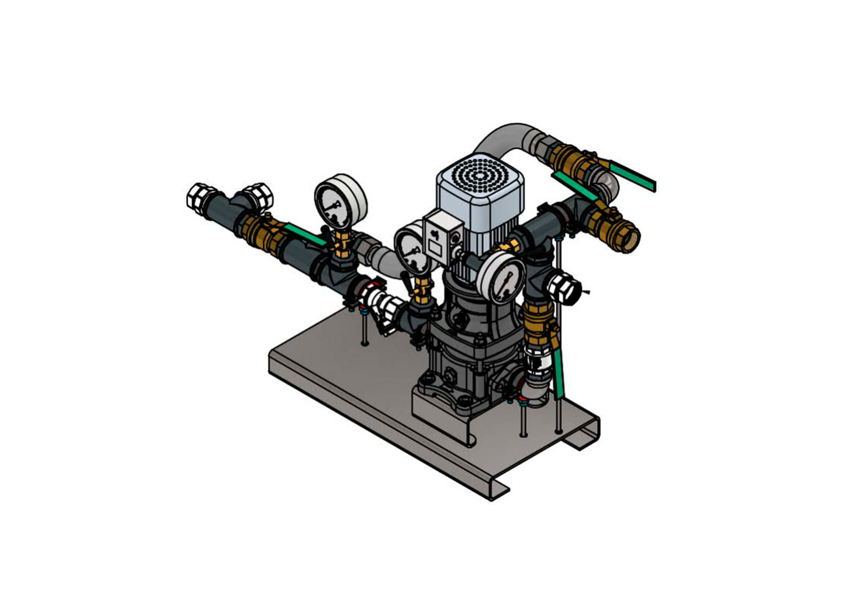 Установка для подпитки системы холодоснабжения из открытой ёмкости. Готовая к подключению установка, монтируемая на опорной раме из стали, комплектная система трубопроводов, включая всю необходимую арматуру и запорные устройства, датчик давления, контрольно-измерительные приборы, насос WILO MVL 203 с торцевыми уплотнениями для гликоля с концентрацией до 50 %